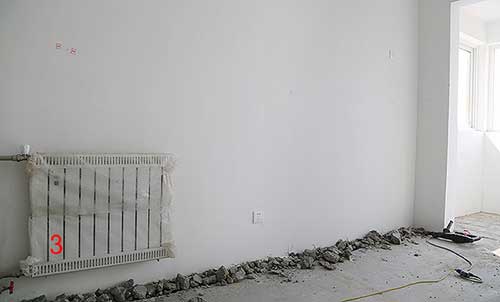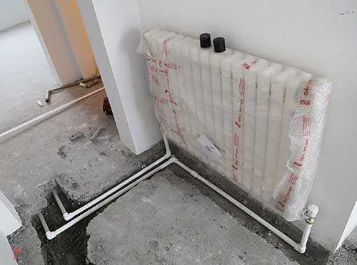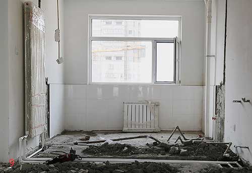 接下來裝修流程開始,首先要改造水暖,開發(fā)商標(biāo)配的