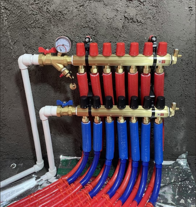 1. 關(guān)閉回水總閥(分水器藍(lán)色手柄)